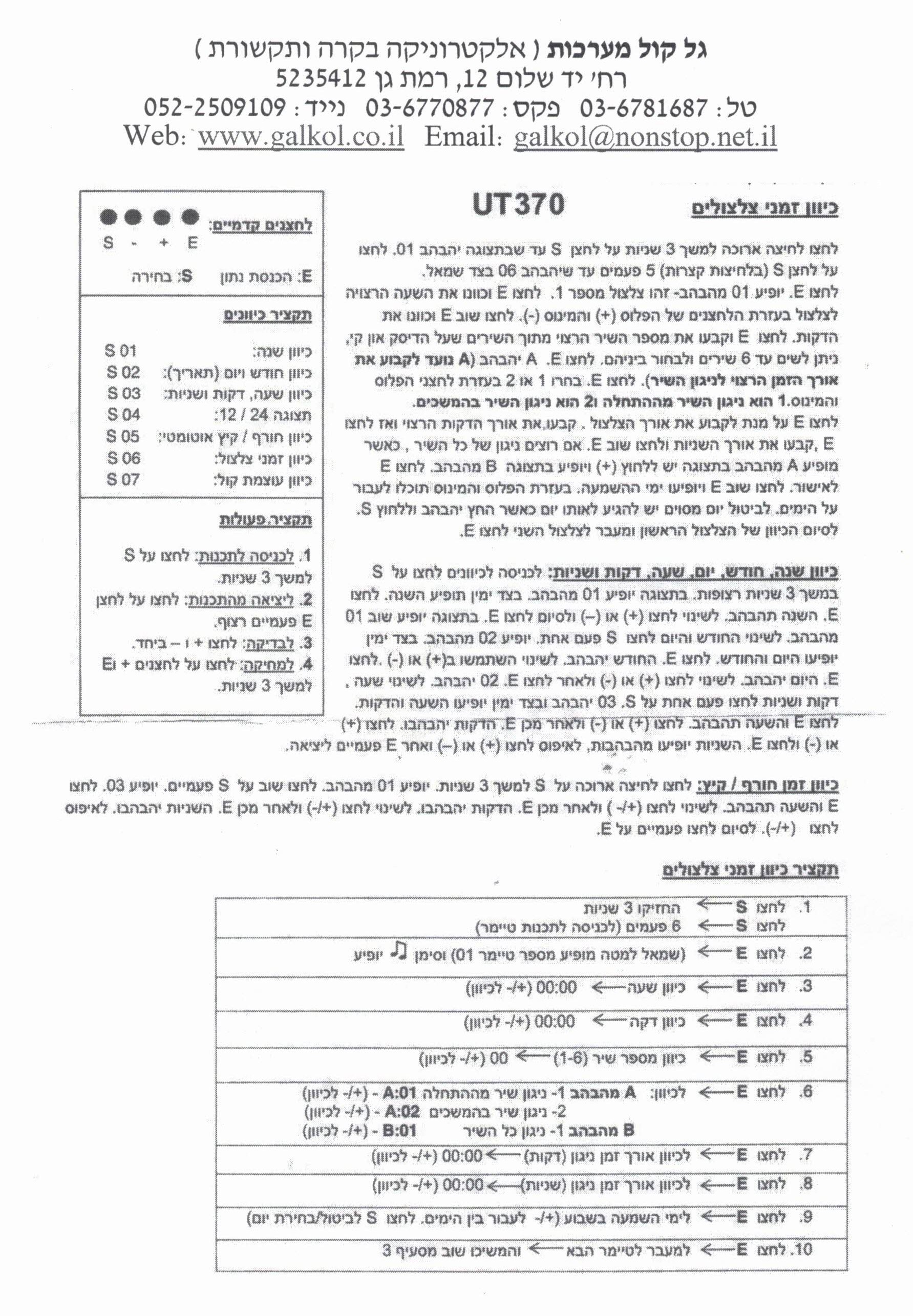 מערכת צלצולים ממוחשבת לבתי ספר ומוסדות חינוך » שעון צלצולים UT370